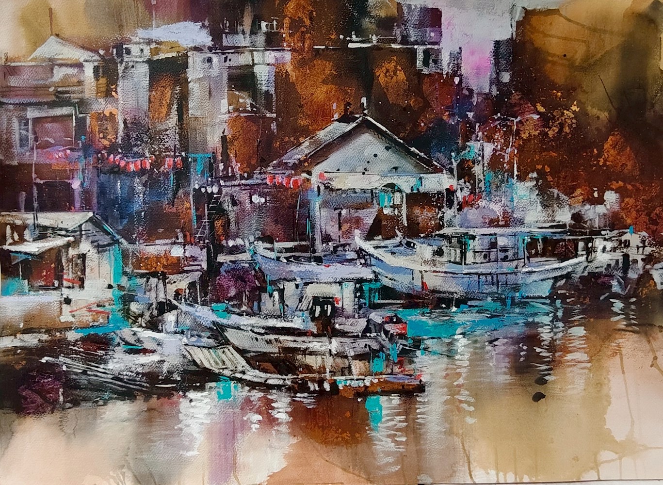 本次展出作品有水彩、膠彩、油畫與壓克力四種媒材,透過不同質感與層次展現,創作者對色彩、光影與情感的細膩詮釋!